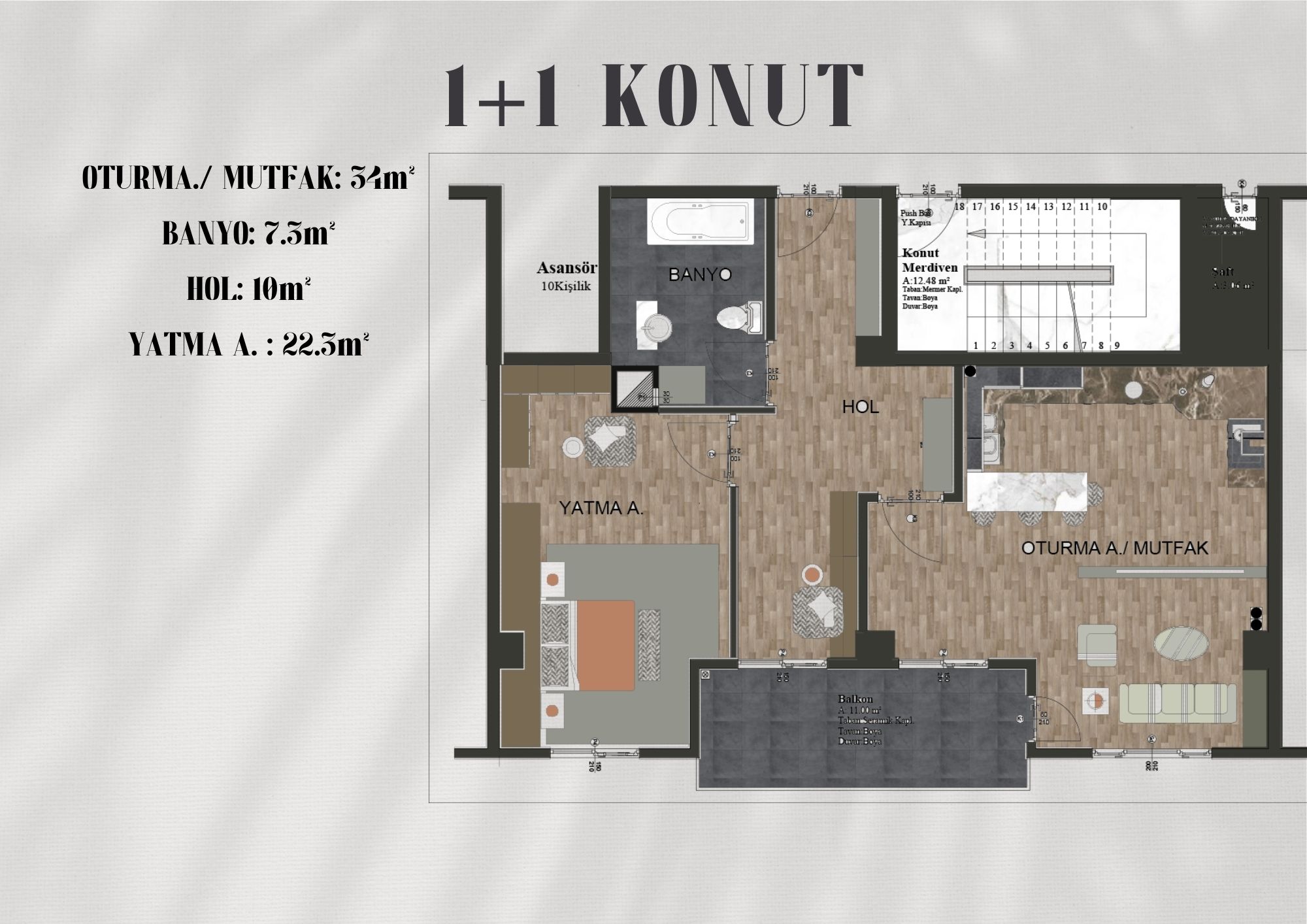 Konut tipolojileri, farklı kullanıcı ihtiyaçlarına cevap verecek şekilde planlanmış; esnek, işlevsel ve yaşanabilir iç mekân çözümleri sunulmuştur. Tüm bu yaklaşımlar doğrultusunda proje, sürdürülebilir, kullanıcı dostu ve kentsel dokuya değer katan bir toplu konut modeli olarak tamamlanmıştır.
